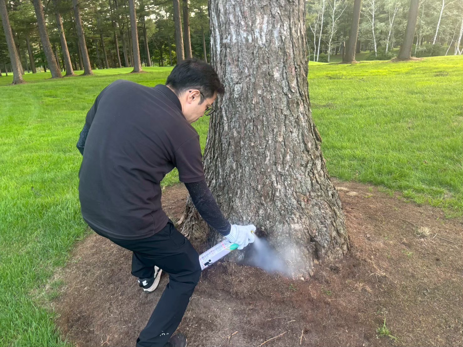 木の中に巣を作ったスズメバチ駆除の様子です。