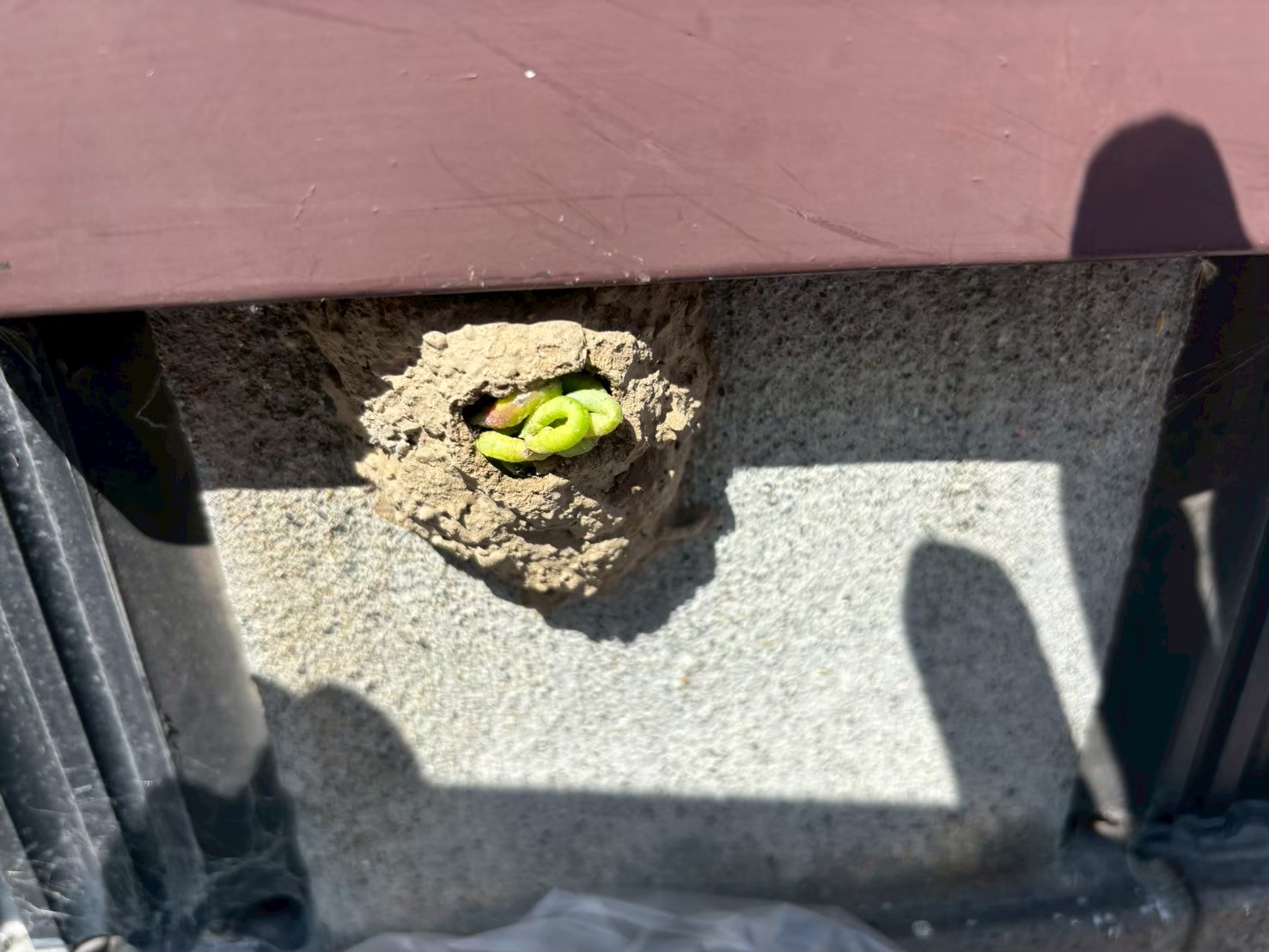 ドロバチはお家の外壁・基礎部分に写真のような巣を作ります。