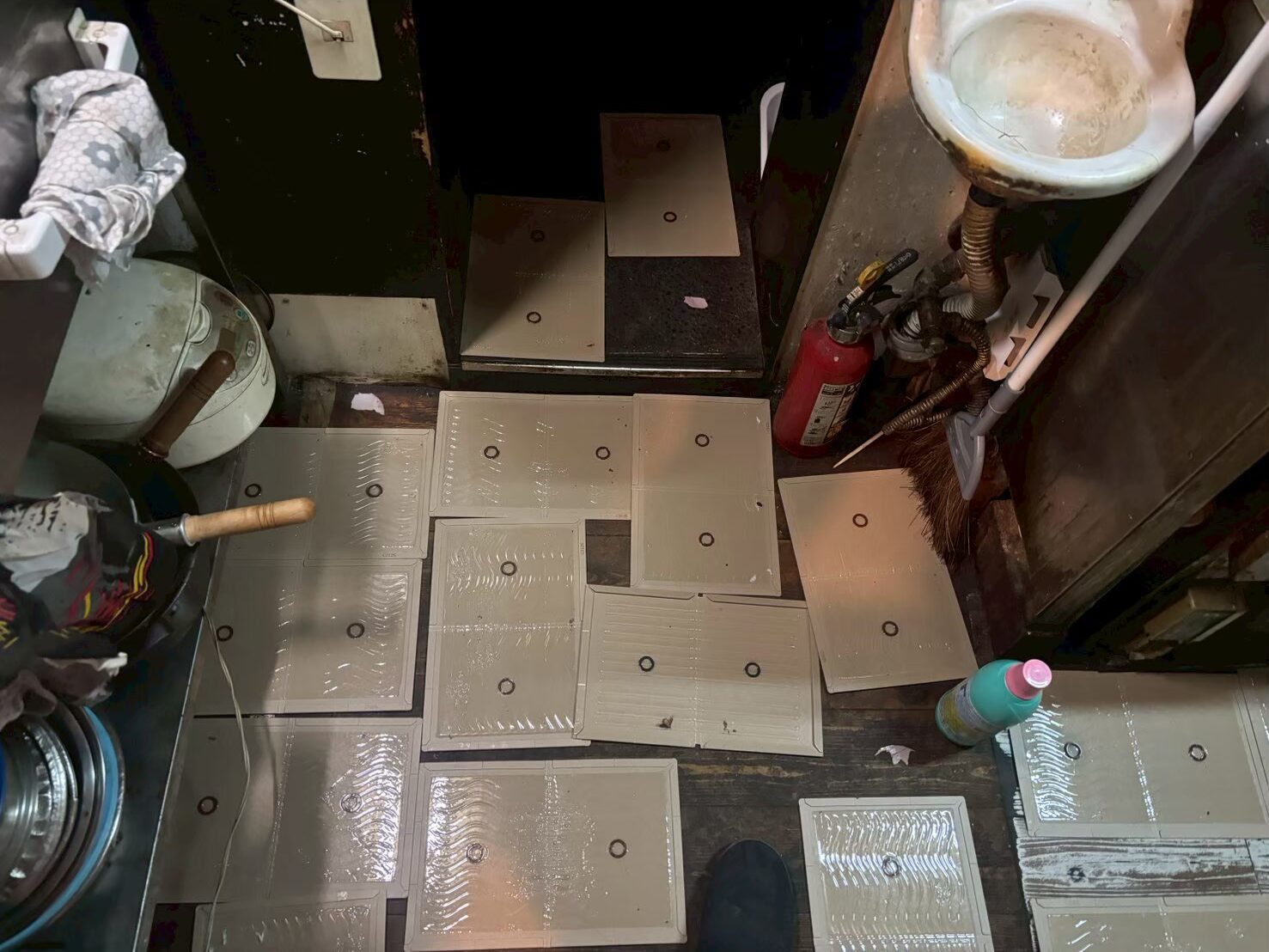 侵入経路を特定する為に、床全体に粘着シートを使用しました。